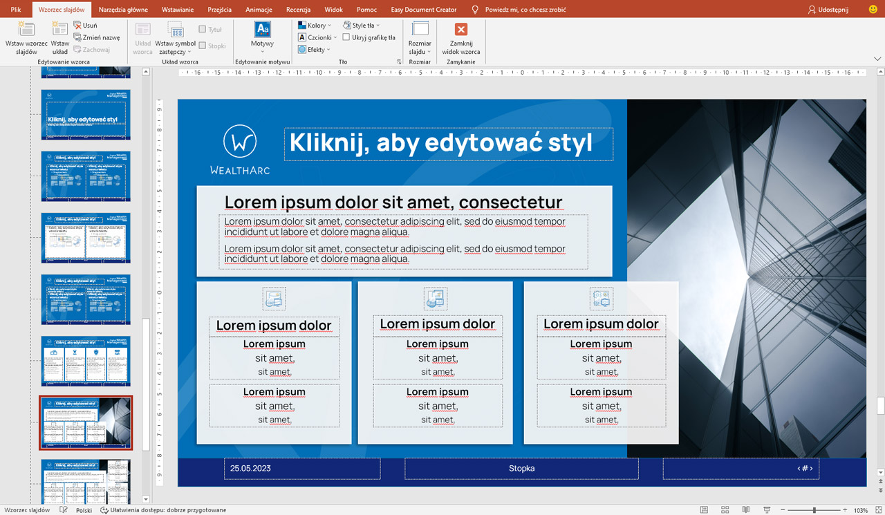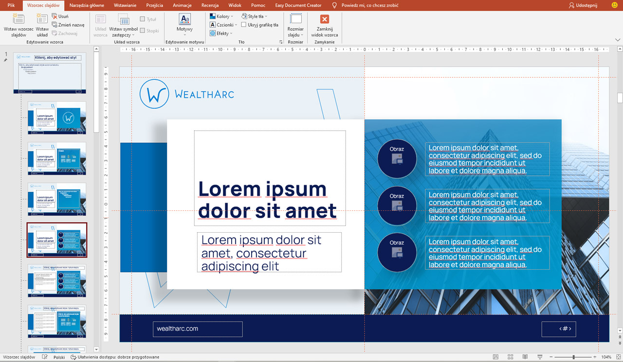 Projekty graficzne dla Wealtharc - system wystawienniczy, szablony prezentacji, rollupy etc